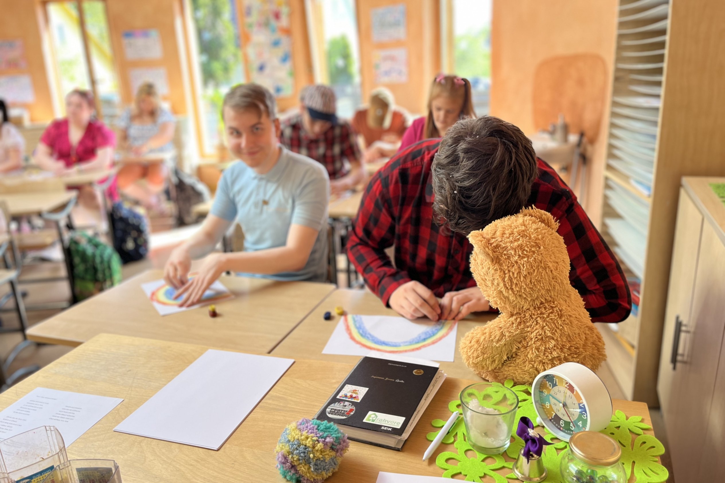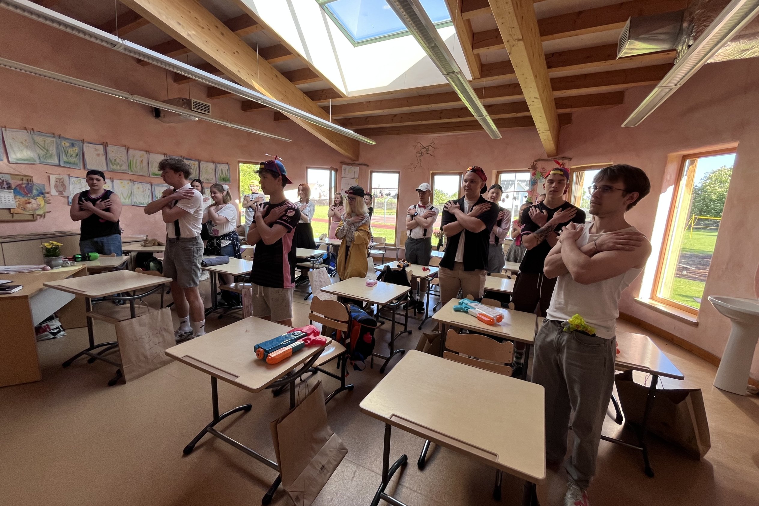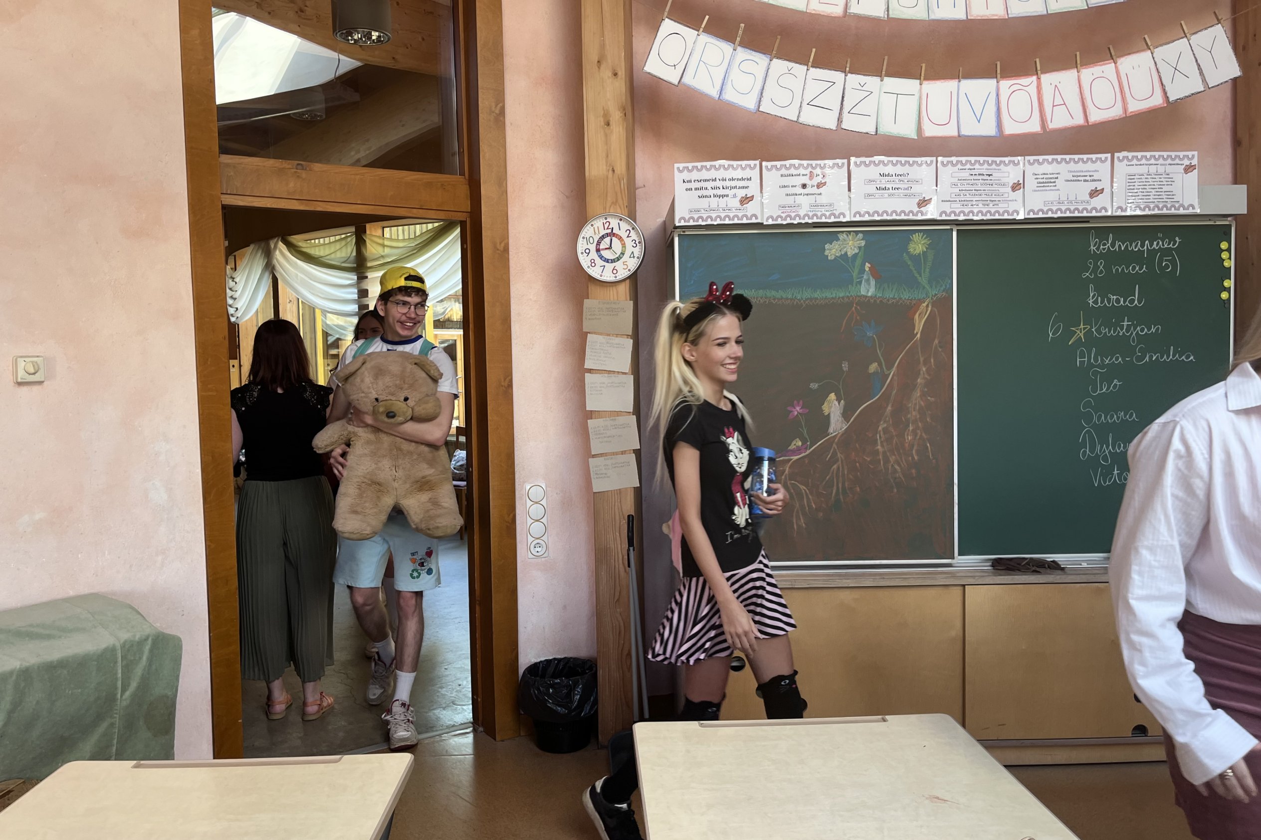 Algklasside õpetajad meenutasid abiturientidele, kuidas nad oma kooliteed alustasid. Mälestusi aitasid äratada ka kehalise kasvatuse õpetaja Lembe korraldatud algklasside õueharjutused abituuriumile, mis ei olnudki väga lihtsad, ja laulmistund õpetaja Annelyga, kus tuli meelde tuletada nii „Rongisõit“ kui ka „Meie kiisul kriimud silmad“.