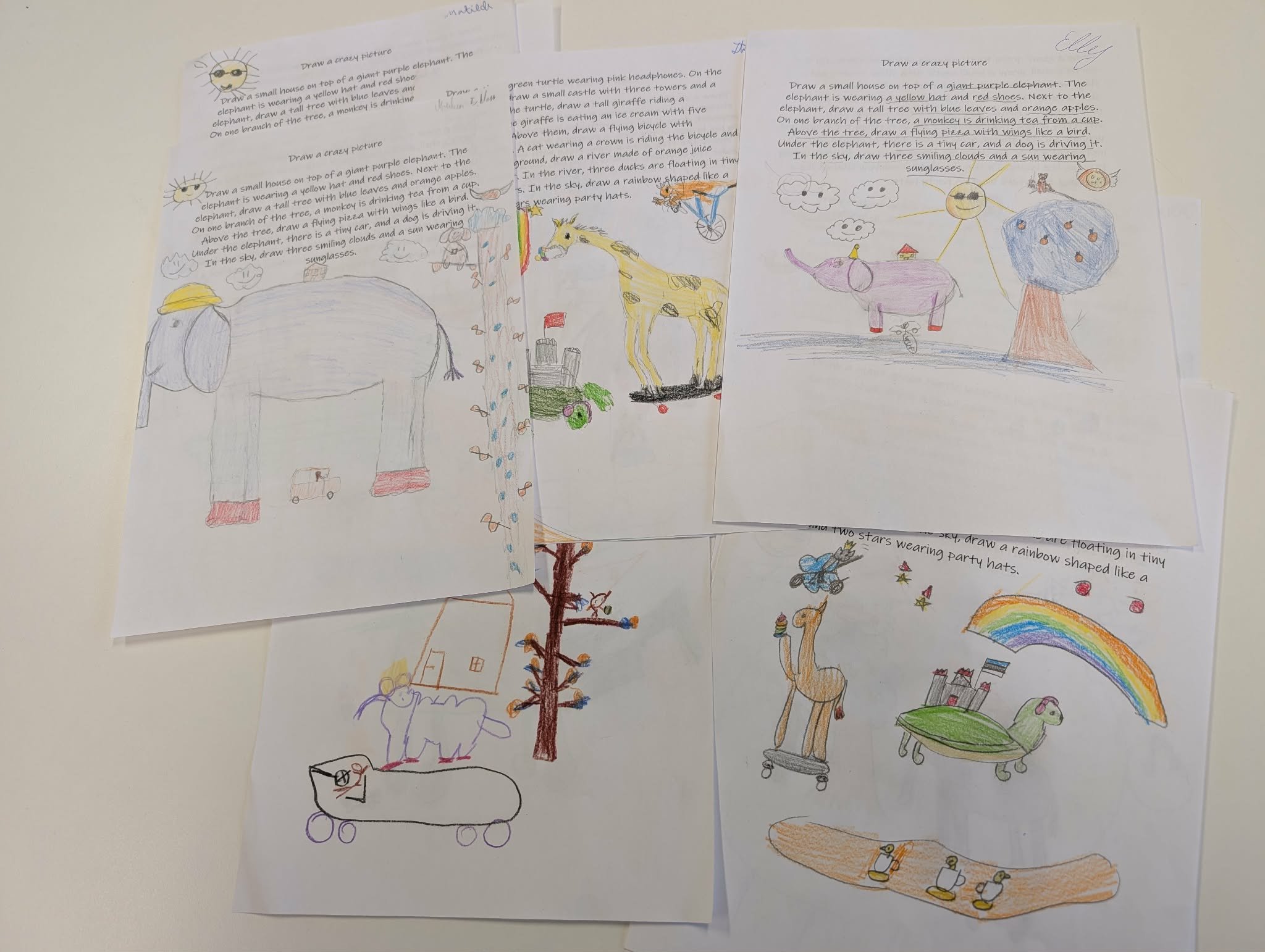 4. ja 5. klassi inglise keele tundides korraldati „Crazy picture challenge“ – kirjelduse järgi pildi joonistamine.