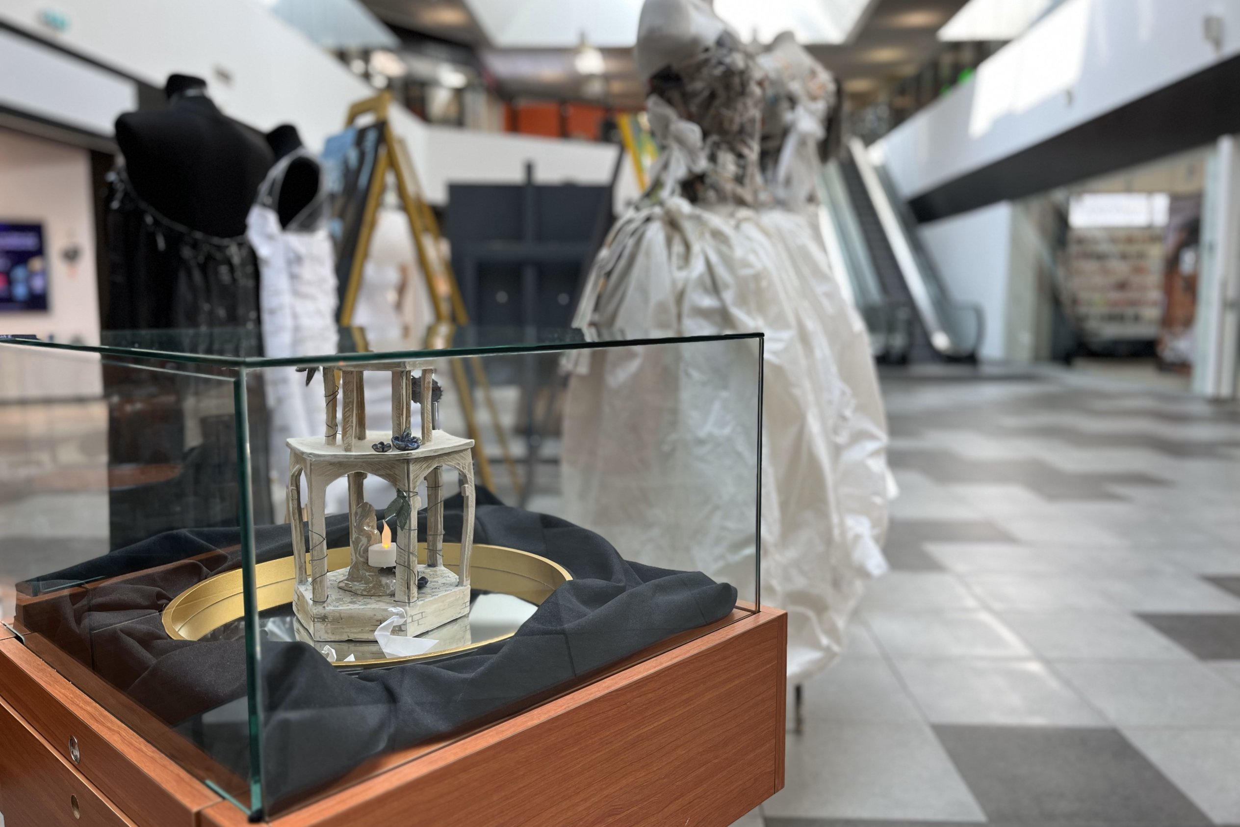 Põhjakeskuses avati täna Rakvere eragümnaasiumi kunsti õppesuuna lõputööde ning loovtööde ja rõivakunsti kursuse „Taaskasutusmaterjalidest rõivavormid“ näitus. Oma töödega on esindatud õpetajate Gitta Nõgu, Helen Ilvese, Krõõt Nõmmela-Mehide ja Teet Suure õpilased Kristina Aleksejenko, Siim-Sander Eru, Stella Kaldma, Heti Kirsimäe, Kadri Liis Leichter, Marii Mäe, Aliina Männi, Annaliisa Pilli, Ketlin Reinmaa, Lisette Selezen, Marko Sudarinen, Kirke-Maria Suvorov, Darija Evelina Zapevalova ja Getter Väli. Lisaks uhketele kostüümidele pakuvad näitusel silmailu maalid, skulptuurid, videofilmid ja keraamika. Näitus jääb avatuks 24. juunini.