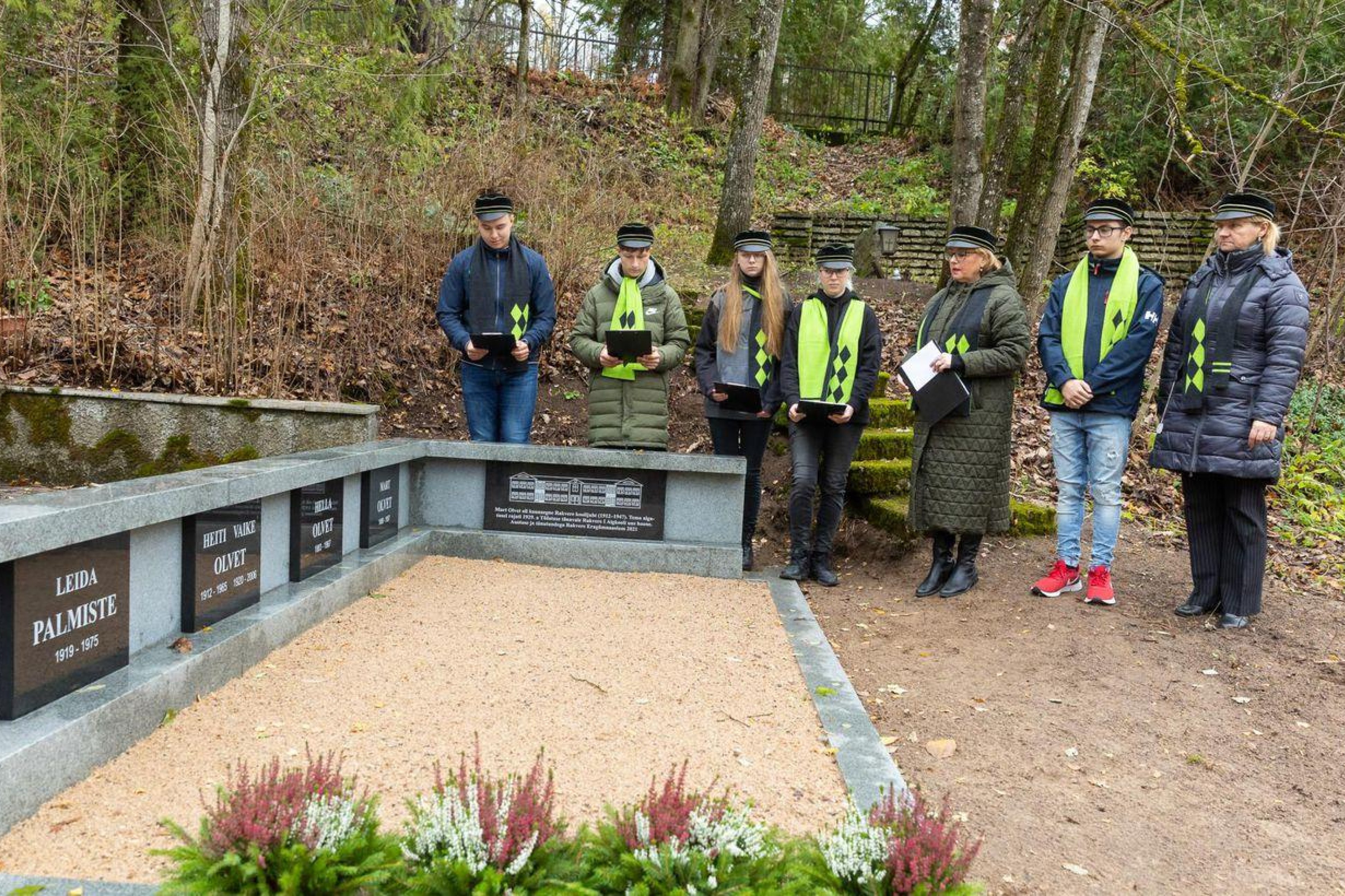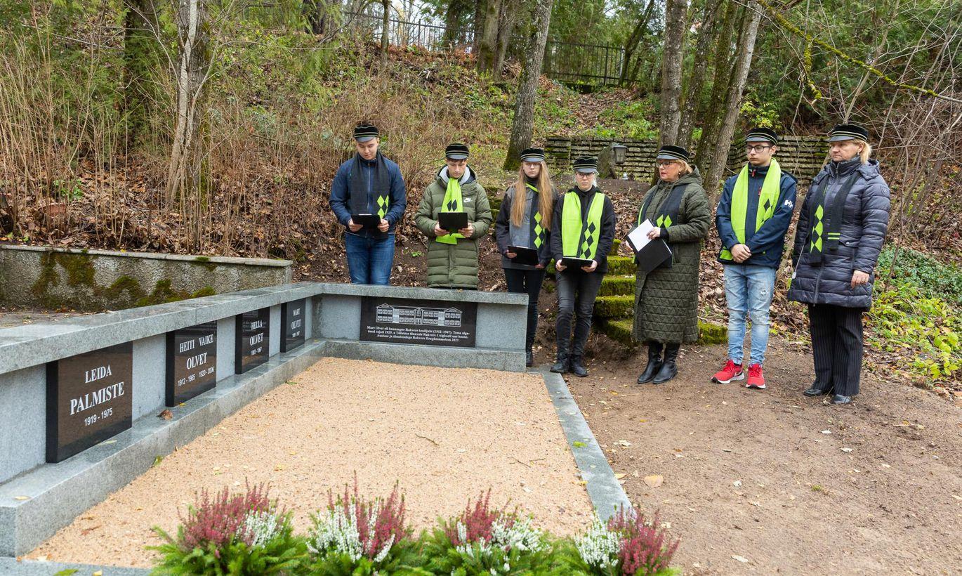 Ta jutustas, kuidas Mart Olveti lapselaps Mari Ann Teedla, kes oli tulnud külla Hiiumaal elavatele sõpradele, sattus üheks päevaks Rakverre, läks hauale, kuhu on maetud ka tema ema urn, ja avastas suureks üllatuseks, et kõik on üles kaevatud. “Õnneks sai ta kätte just minekule asutanud kalmistuvahi, kellele Teet [Suur] oli jätnud platsi kujunduse joonised. Nii ta nägi, mis on plaanis, ja sai teada, et seda teeb kool. Nad tulid kooli. Nii et saime kontakti tänu sellele, et hakkasime Mardi [Olvet] mälestust esile tõstma.”