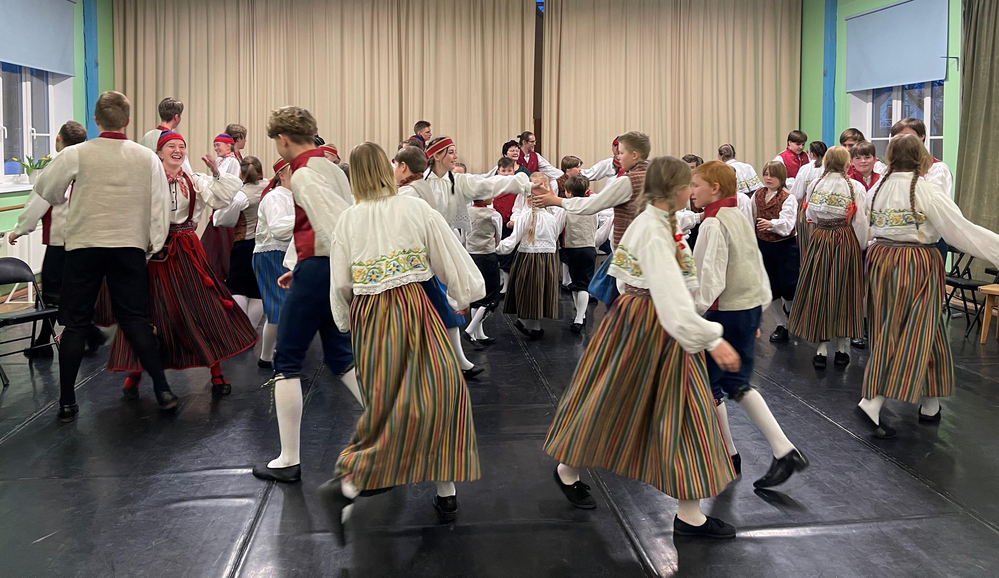 Kogu pidu lõppes kõikide rühmade ühistantsuga, kus nii väiksemad kui päris suured rahvatantsijad esitasid eesti rahvatantsu „Oige ja vasemba“. „Kiidan kõiki tubli ühise töö eest, nii tantsijaid kui õpetajaid, käsitöömeistreid ja kindlasti ka lapsevanemaid – see oli väga tore pidu,“ tunnustas Anne Nõgu.