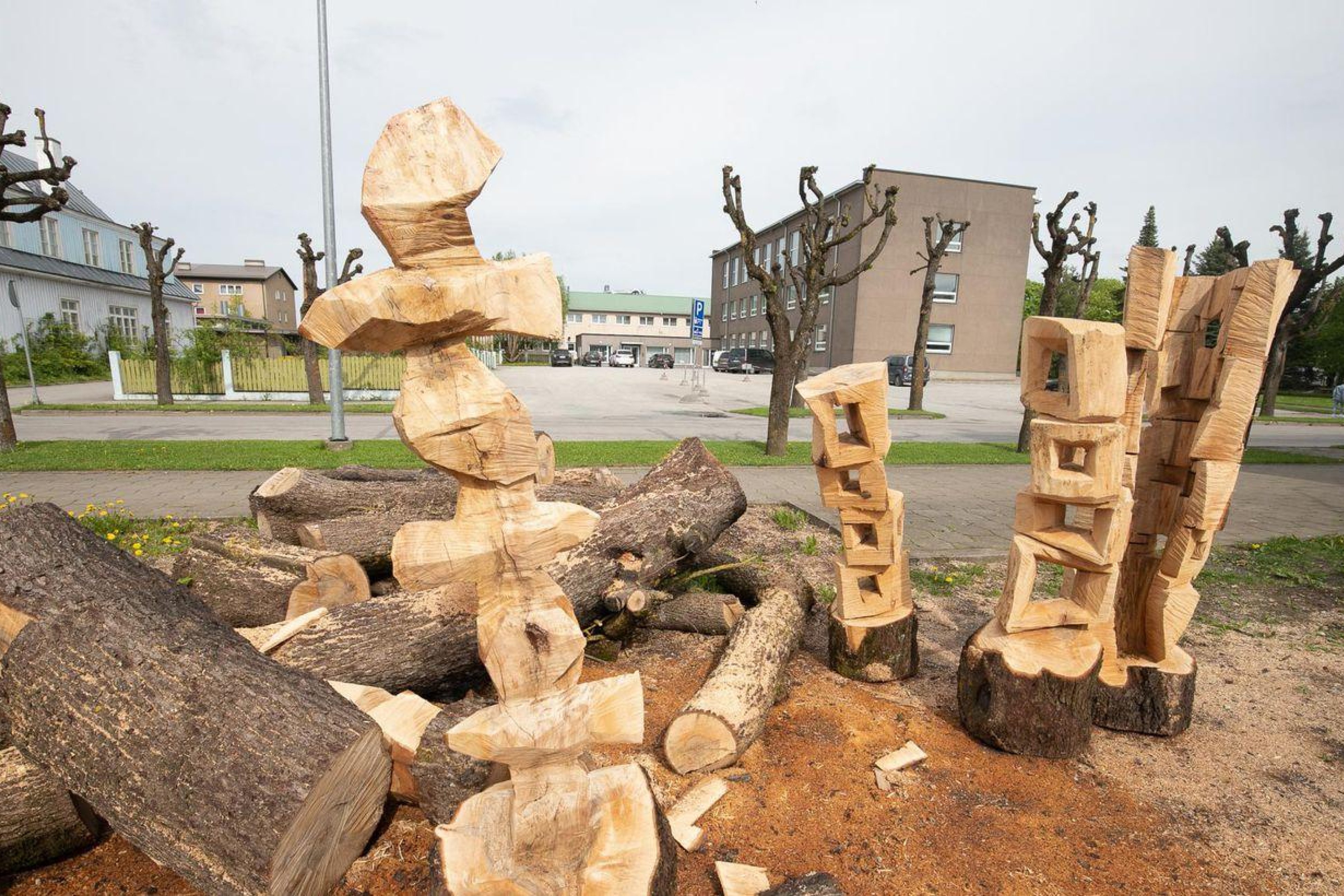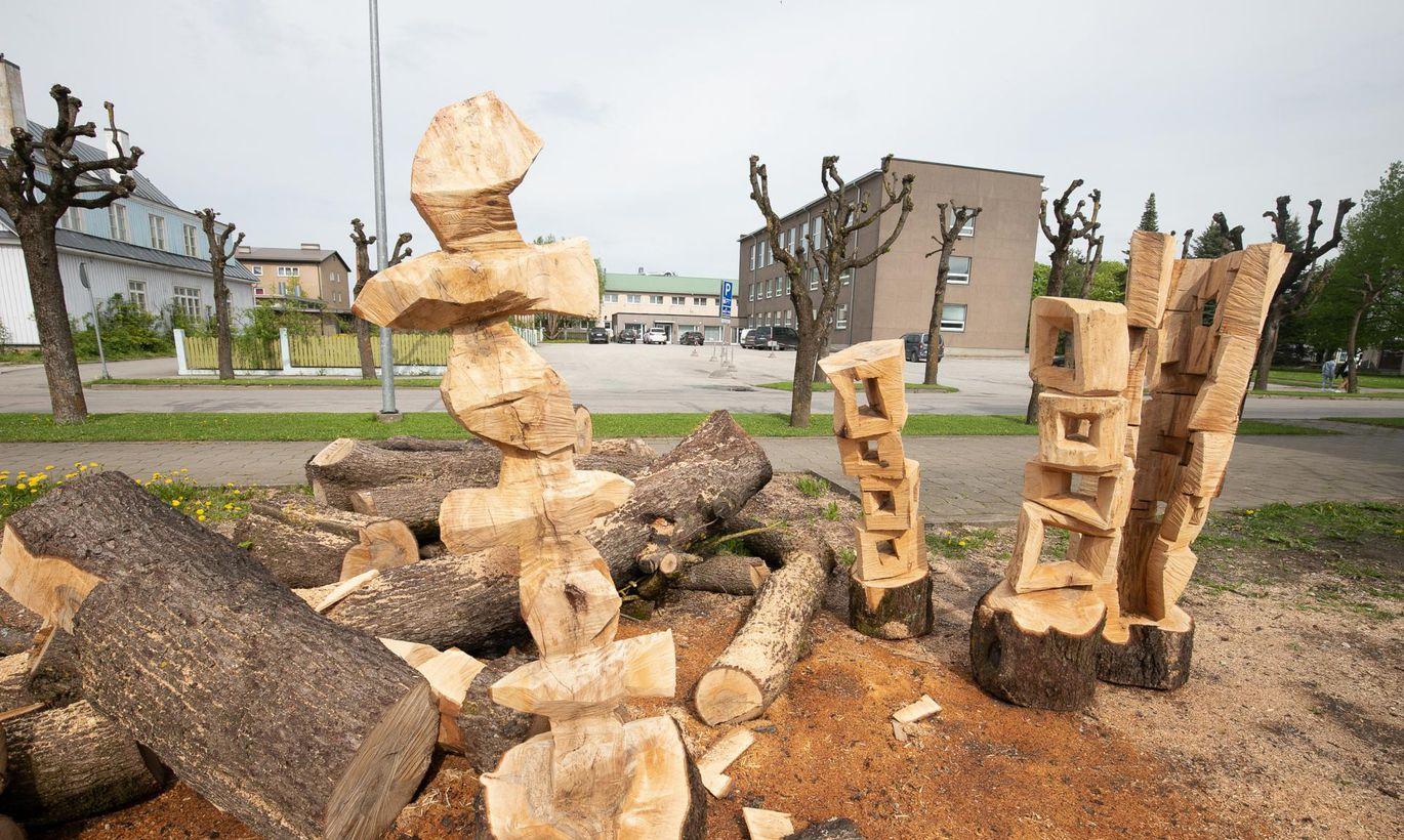 Rakvere eragümnaasiumi juurest maha võetud puudest loob kunstnik Teet Suur skulptuurseid vorme.